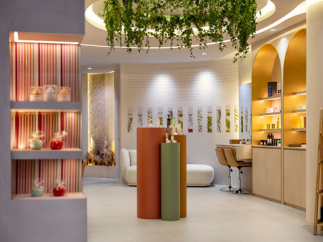 This theme blends a palette of soft neutrals, warm beige, and muted gold to create a tranquil yet opulent ambiance, complemented by textured surfaces and lush greenery.